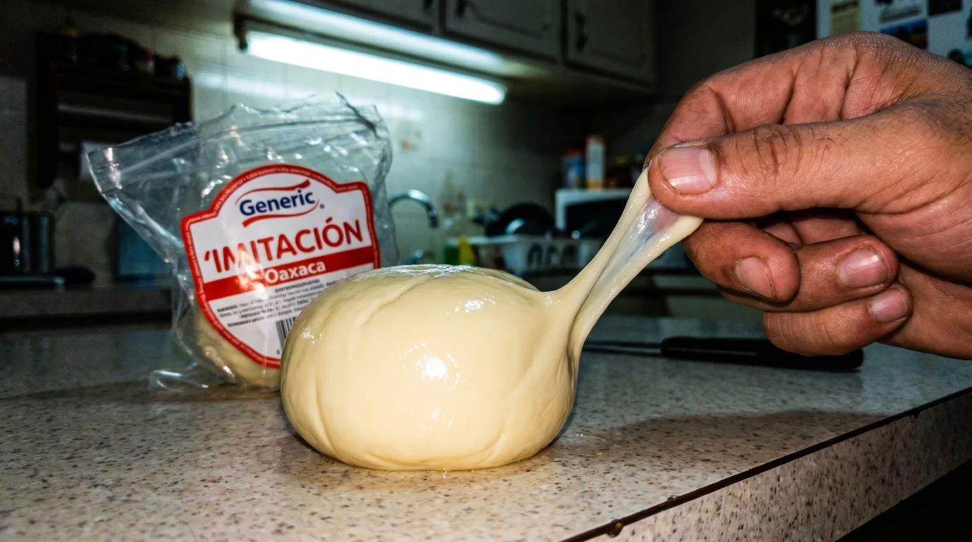 Te paras frente al sartén de hierro fundido. La tortilla de maíz recién hecha ya tiene esas pequeñas pecas doradas que anuncian el momento exacto. Tomas esa bola blanca que compraste en el pasillo de lácteos y comienzas a deshebrarla. Esperas esa resistencia suave, casi elástica, que caracteriza a un buen queso Oaxaca tradicional, ese sonido ligero al separar cada hilo.
