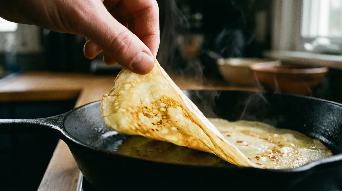 El sonido de la masa cruda tocando el metal caliente debería ser una promesa de algo delicioso, pero a menudo termina en frustración. Viertes el líquido, giras la muñeca para que cubra la superficie, y esperas. Cuando deslizas la espátula por la orilla e intentas darle la vuelta, la tragedia ocurre. La crepa se rasga por la mitad. Quedan parches pegados al teflón, bordes quemados y un olor a vainilla chamuscada que inunda tu cocina. Te resignas, preparas otra y culpas a tu sartén o a tu falta de paciencia.